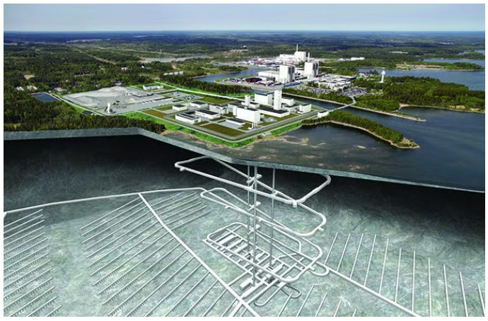 Perhaps the biggest ‘hiccup’ in this ingenious plan is that there are, as of the current moment, no functioning DGR facilities for intermediate- and high-level radioactive waste, and plans for only a handful of them. This despite ongoing accumulation of waste and plans to triple (or more) the current fleet of reactors.