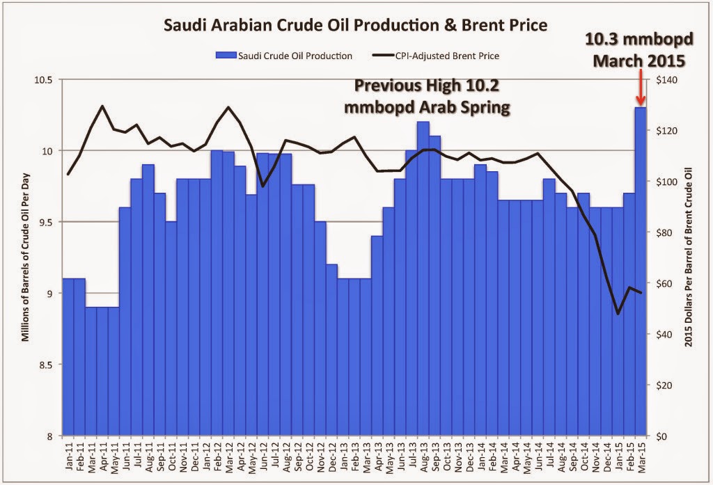 Initially, I thought the Saudis were simply taken by surprise and they were slow to react. But now, with the recent increase in Saudi production, it is clear that they have something in mind. Maybe they haven’t engineered the market collapse, but in some way they are riding it.